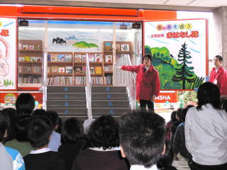 去る1月8日(火)、町立図書館において講談社主催「全国訪問おはなし隊」にみなさんが、おなじみのキャラバンカーで本町にお越し下さいました。